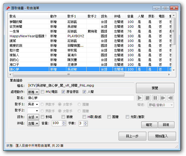 避免錯誤,還請逐一點選歌曲試聽及進行微調或修正(養成好習慣)